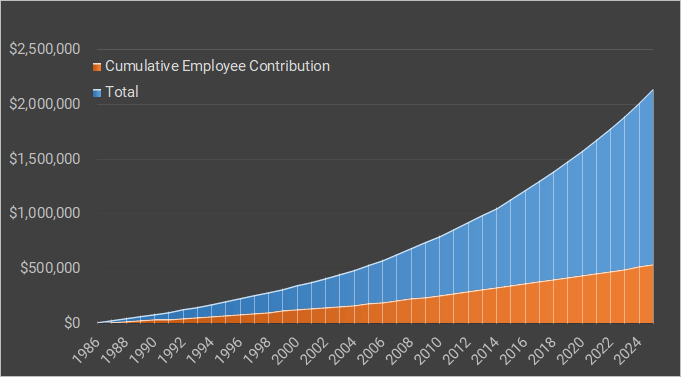 Let’s imagine you have suddenly woken up and it is 1986 and you are starting your first full-time job and 22 years old. Median weekly wage across all professional specialty occupation, i.e., engineers, in 1986 was $599 per week or $31,148 per year. This is a lot money, and the difference in men and women pay is unbelievable. But that is a topic for a different blog article. To put a man’s pay into context, adjusted for inflation, this is $88,763 in today’s money. Every year IRS caps the amount an individual can invest in 401k, and in 1986 this was $7,000 for employee contribution and $30,000 for total contribution. If you max out your 401k contribution every single year, and in 2024 you have invested a total of $542K but you will have a tidy $1.5M in your 401k when you get ready to retire! This excludes any post-50 catch up contributions ($1.59M). All this with a bare minimum 4% growth, when average 401k growth is 4-8%. The required minimum distributions will likely get to you before you live out your savings! This is the power of compound interest and time. Do nothing, just automatically save in your 401k and retire, literally, like a millionaire.