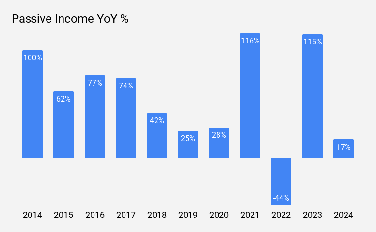 Our passive income has grown consistently at an average rate of 55% over the past 10 years. While it was easy to have large growths in annual dividends early on since our baseline was very low, it has been tough to keep up the 60 – 70% growth seen in 2015 – 2017.